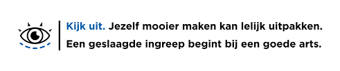 Het is belangrijk om helder te hebben waarom en waarvoor u langskomt, zodat we dit kunnen meenemen in het advies. Aan de hand van het intakegesprek kijken we naar wat er precies nodig is en adviseren we u over een mogelijke behandeling. Daarbij kan het zeker ook voorkomen dat we adviseren om juist niet te behandelen. Less is more!